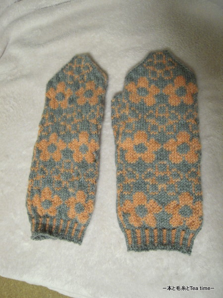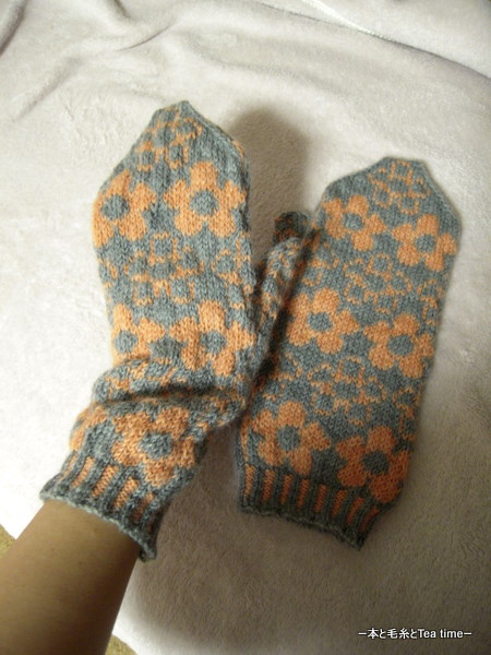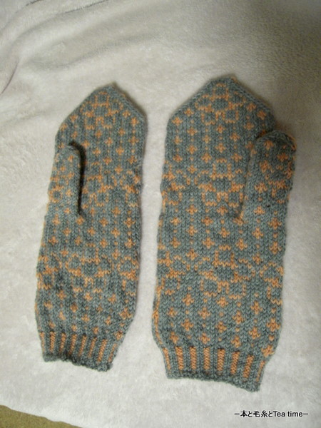 私は編み込みがユルイみたいだからと三國さんのミトンをきつく編むように頑張ってたんだけど、ミルテは中細糸だからきつく編んだら何だかエライコトになっちゃって・・・。