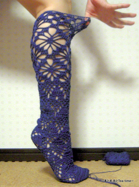 いつも編み込みがユルイから、今日はきつくきつくを心がけて編んでみたのだけど、こりゃきつすぎて伸縮性が怪しいよ(爆)