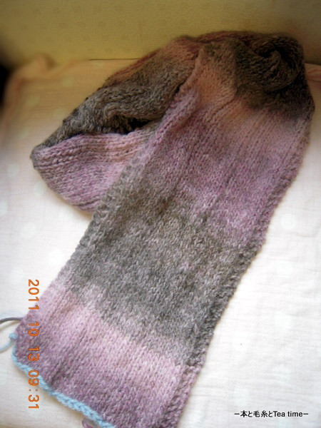 私二色のゴム編み始めてだった。難しいですね(;^_^A アセアセ・・・。