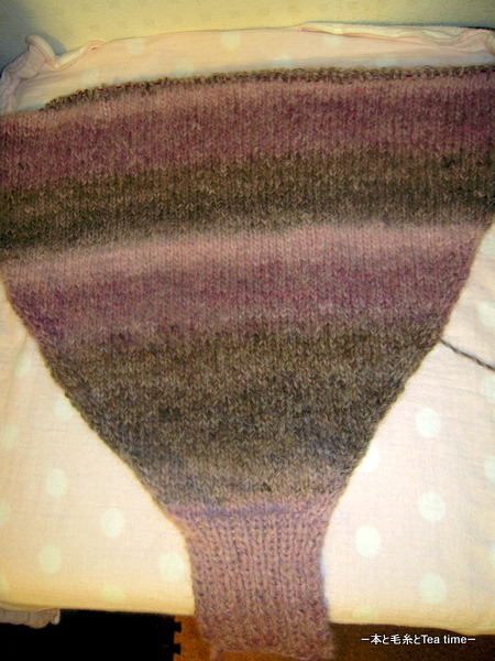 何だか妙な形ですが、これmichiyoさんの「着こなし上手のニットのふだん着」からFのカーディガンの予定でした。