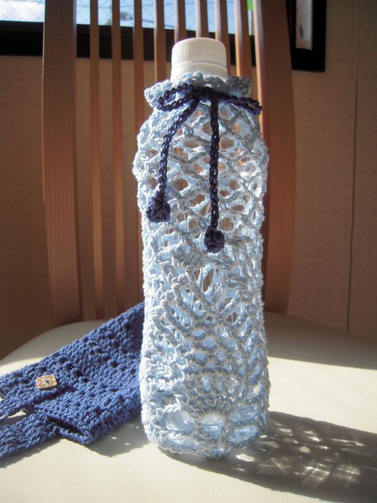 だから今日の画像は、スヌードが完成する前に(え?)何となく小さなプレゼントによいかもと思って編んだペットボトルカバー。