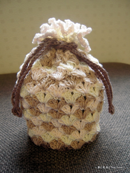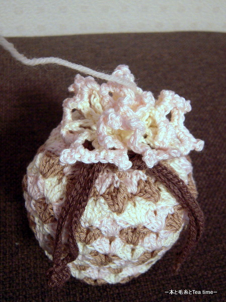 編み図は川路ゆみこさんの「かぎ針あみスイーツのこもの」から。