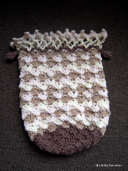 昨日のミニバッグ、結局ほどいて編み直しました。