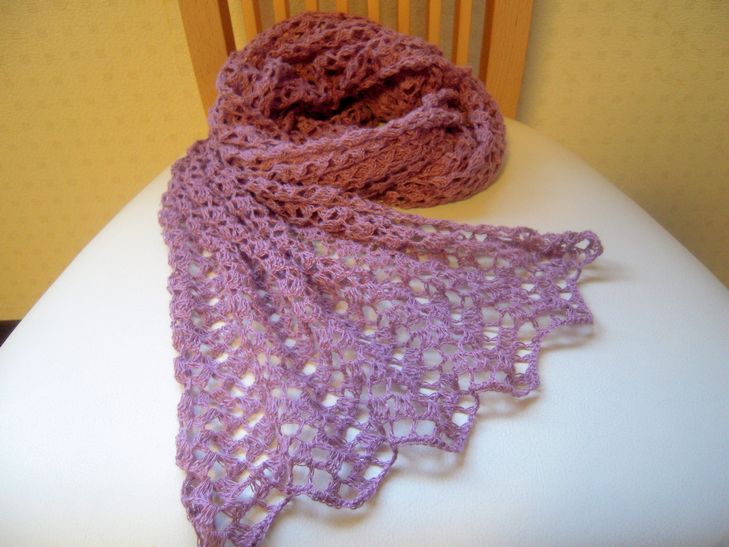 両端にあたる部分には透かし模様が来ないように細編みとかそういうのを入れた方がいいかも。