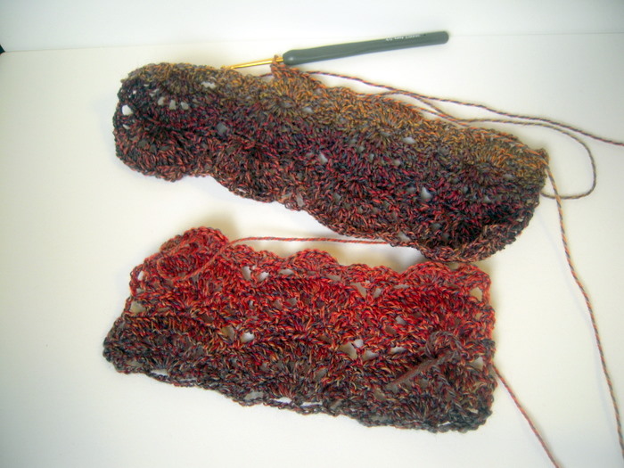 でも「ユウヤケのソラ」で20段くらい編んでみて。