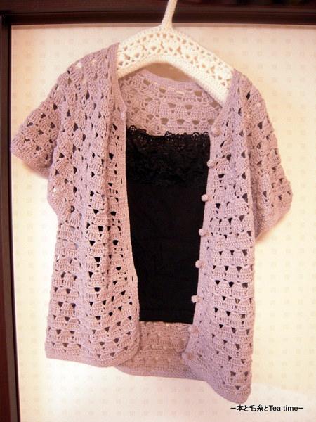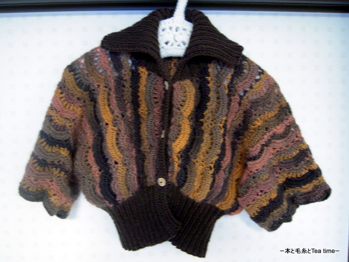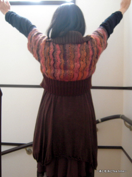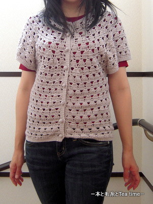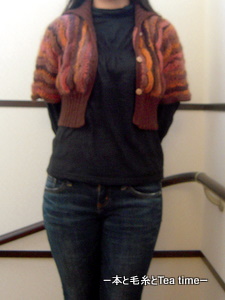 って感じですが、これは今年の4月に完成していた「ウタゲー3」のボレロカーディガンの着画です(;^_^A アセアセ・・・(4月8日の日記が完成記事です)。