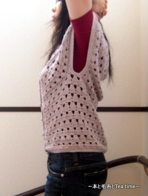 「クロッシェレース生活 Vol.3」から「求心編みのジレ(岡本啓子)」。