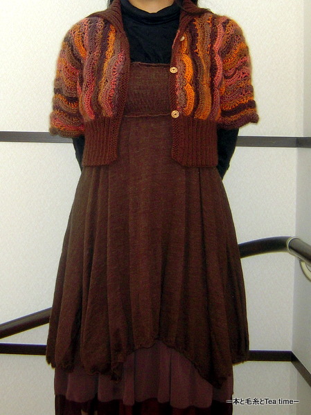 丈の短いボレロだからずっとワンピースと合わせて着るつもりでいたのですけど。
