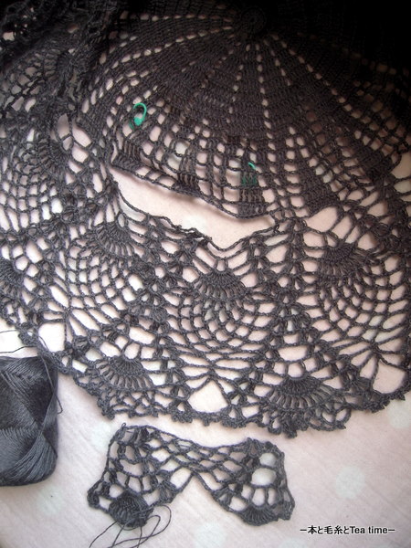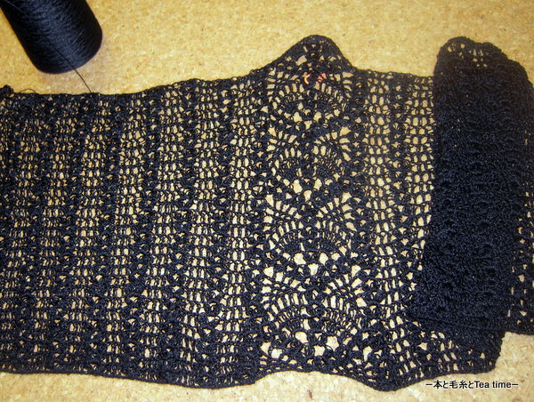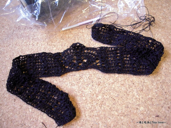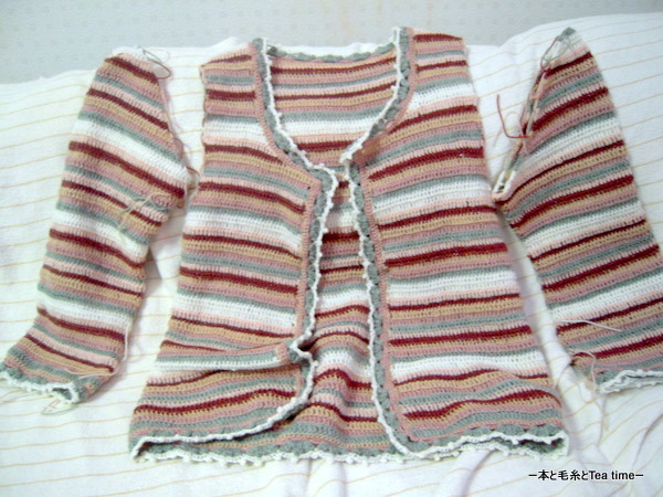 現時点では片袖つけとそこの縁編みを残すのみの状態だから、明日にはできるかな。