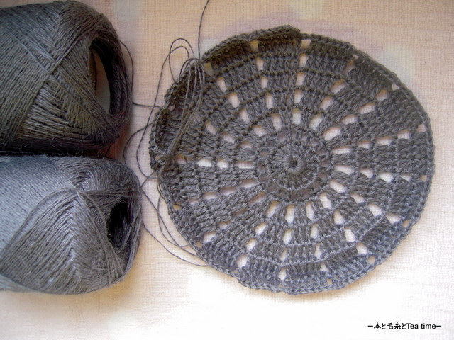 Ramie gerdenで編んでいるドイリーのジレ?なんですが。