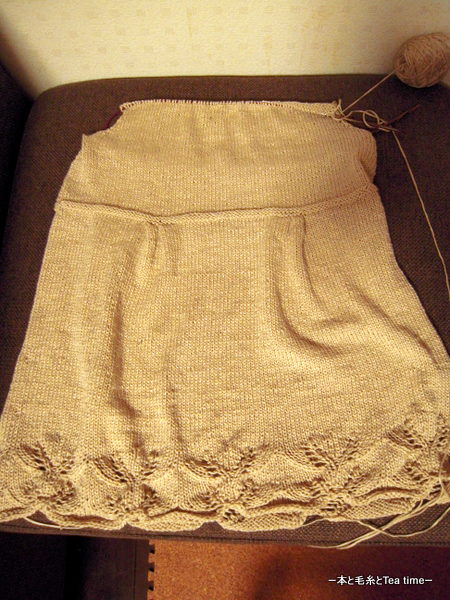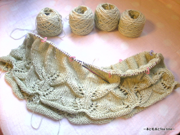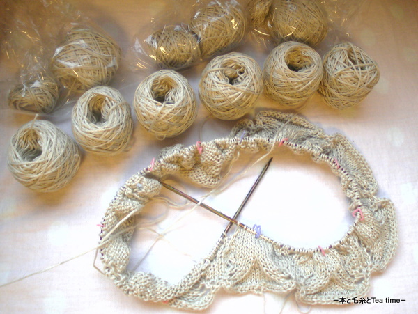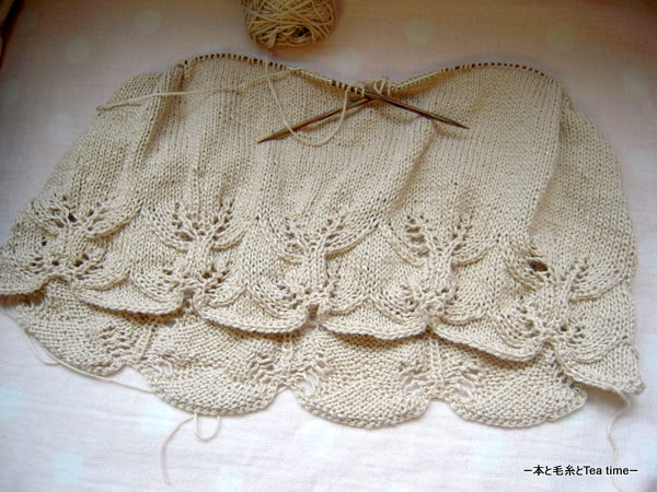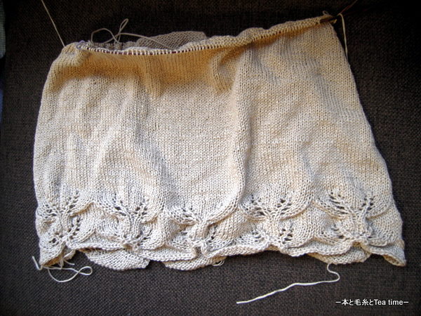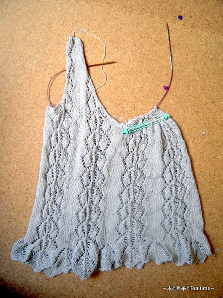 前回upしたときより毛糸玉1個分は進んでいるのに、見た目ほとんど変わらない「Beaded Cami」。